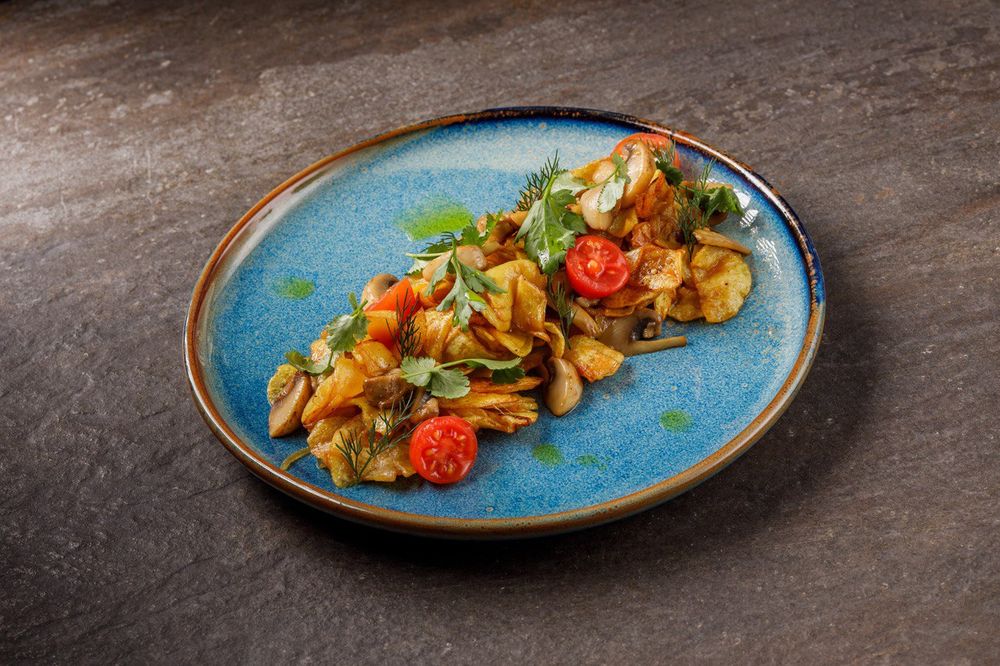 {Жареный картофель с грибами и луком} с доставкой в Симферополе