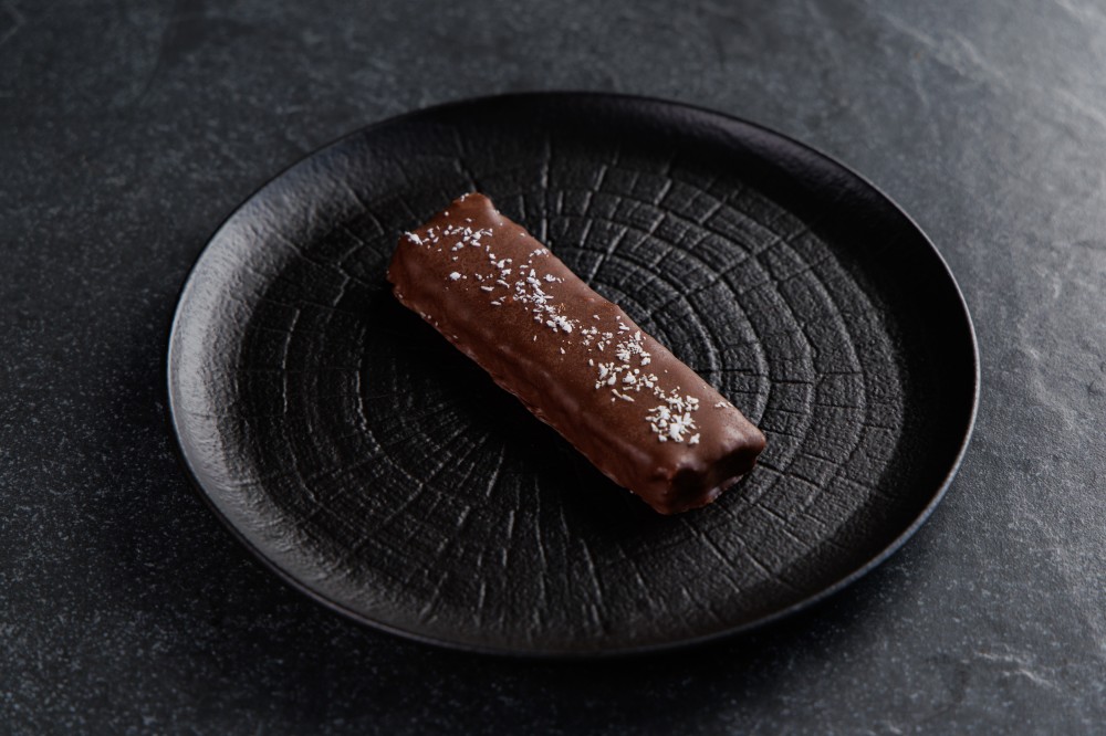 Батончик приготовлен из продуктов не содержащих сахар. Карамель, кокосовая стружка, молочный шоколад, марципан.