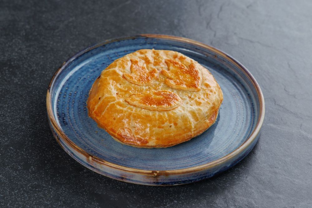 Пирог из слоеного теста с картофелем, курицей, луком, грибами и кедровыми орехами