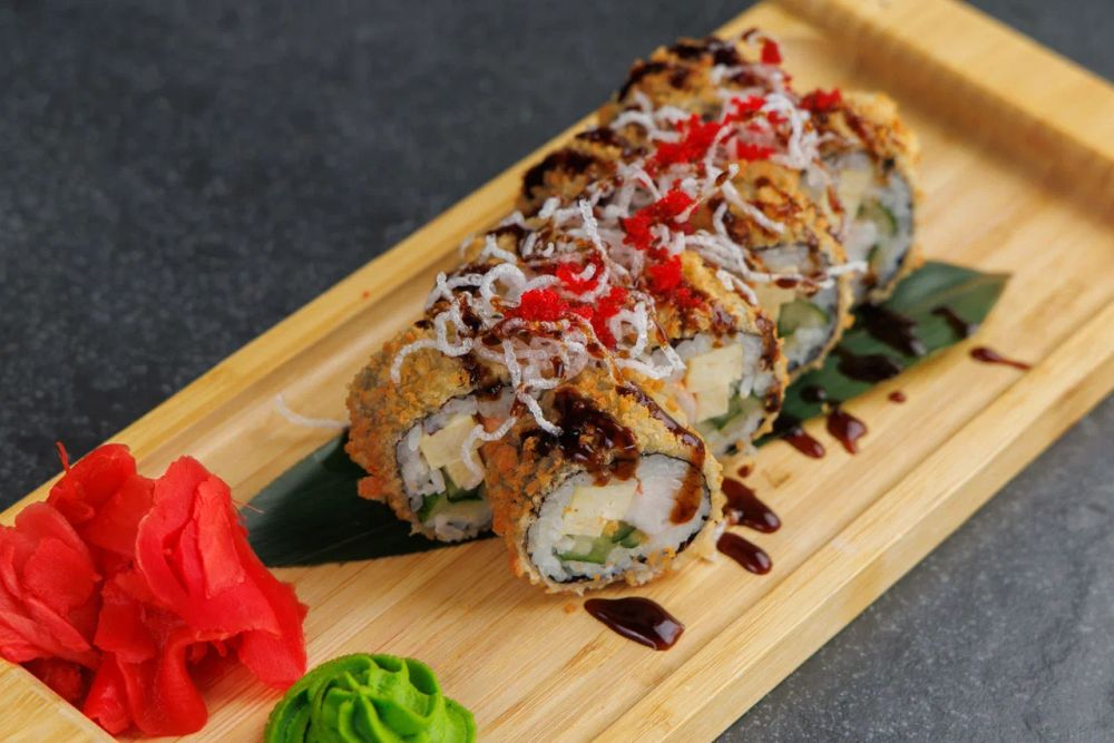 {Жареный ролл в темпурном кляре с креветками} с доставкой в Симферополе