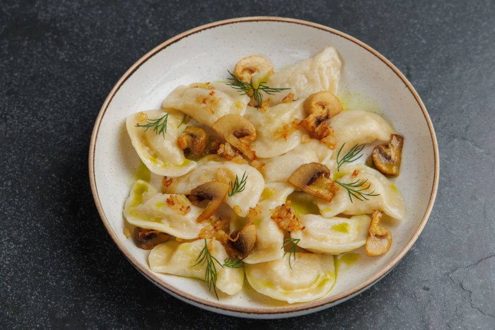 {Домашние вареники с картофелем ,грибами и жаренным луком} с доставкой в Симферополе