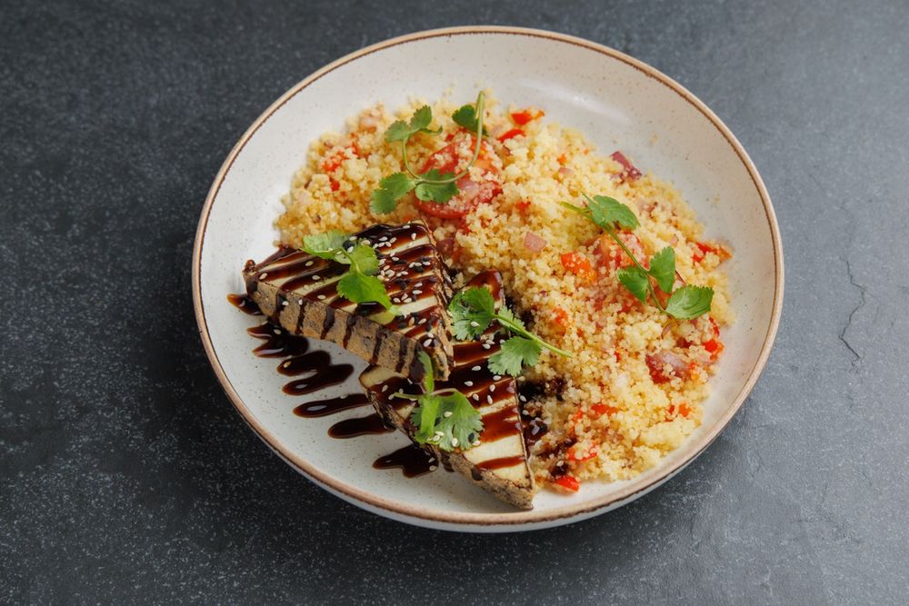 {Жареный кускус с кинзой и сыром тофу} с доставкой в Симферополе