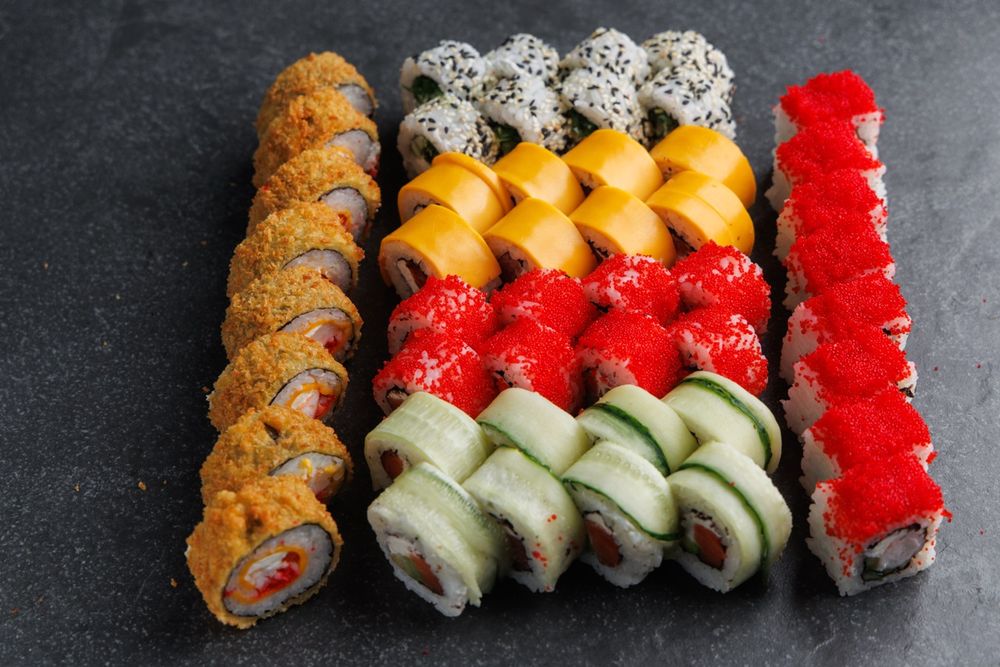 Темпура чиз ролл с креветками, ролл Осака, ролл Чиз, ролл Сакура, Филадельфия грин, ролл Киото